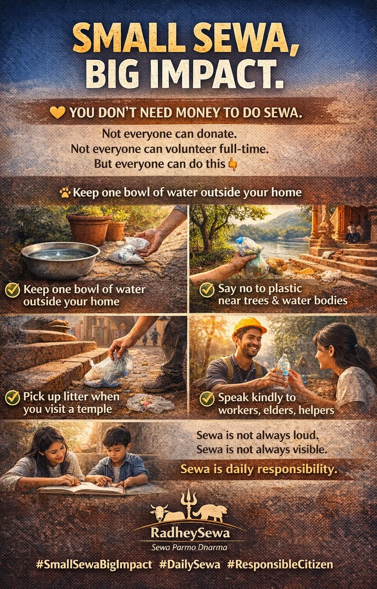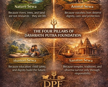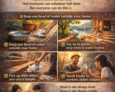 Through sewa, we nourish the voiceless, safeguard our environment, and support temples with devoted Mandir upkeep.