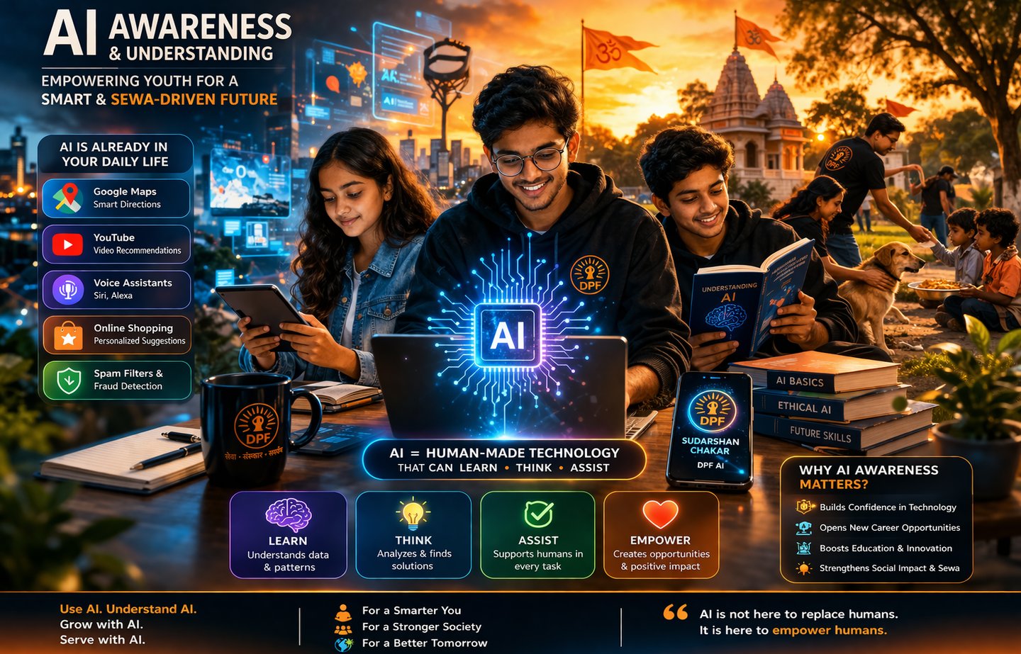 For organizations like Dashrath Putra Foundation (DPF), AI awareness also matters because it can support Sewa initiatives. AI can help reach more people, organize information better, and improve the impact of community service work. 🌍🙏