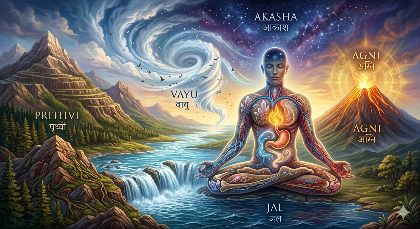 We are not just living on Earth, we are made of Earth. Our bodies are a "Mini-Universe" constructed from the Panch Mahabhuta (पञ्चमहाभूत)—the Five Great Elements. When we disrespect nature, we are literally attacking the building blocks of our own life.